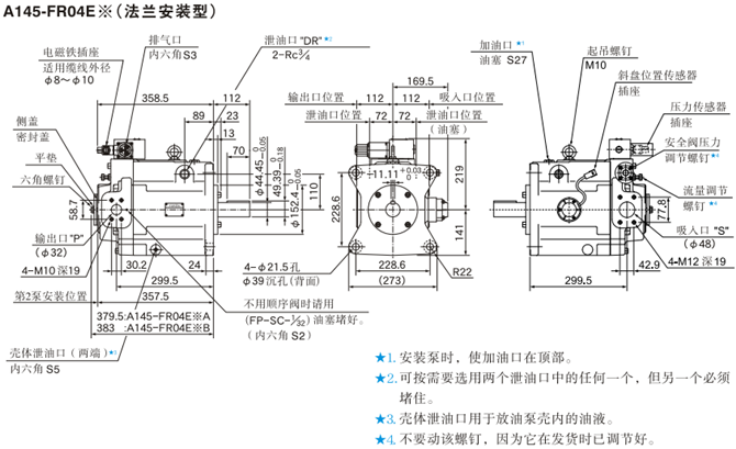 A145-FR04E※(法蘭安裝型)油研柱塞泵安裝尺寸圖:
