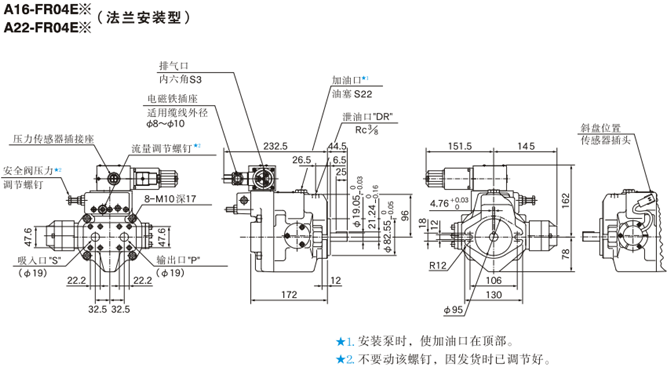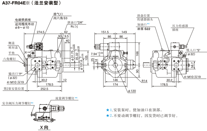 A16-FR04E, A22-FR04E油研柱塞泵安裝尺寸: